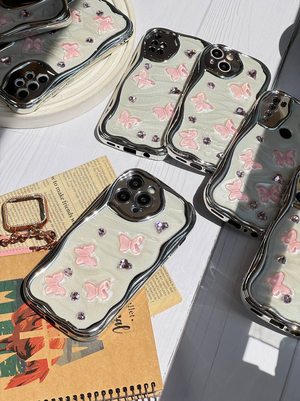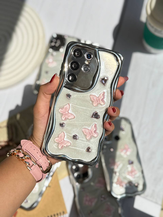 🦋قاب کرومی پروانه و قلب صورتی 🦋